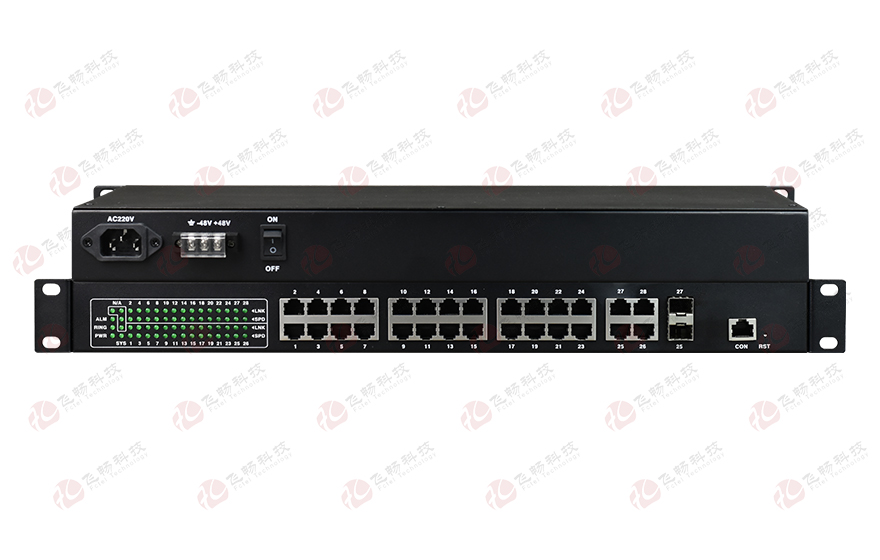 • 飛暢科技-24路百兆以太(物理隔離)+8路電話+4路串口(1+1光備份)光端機